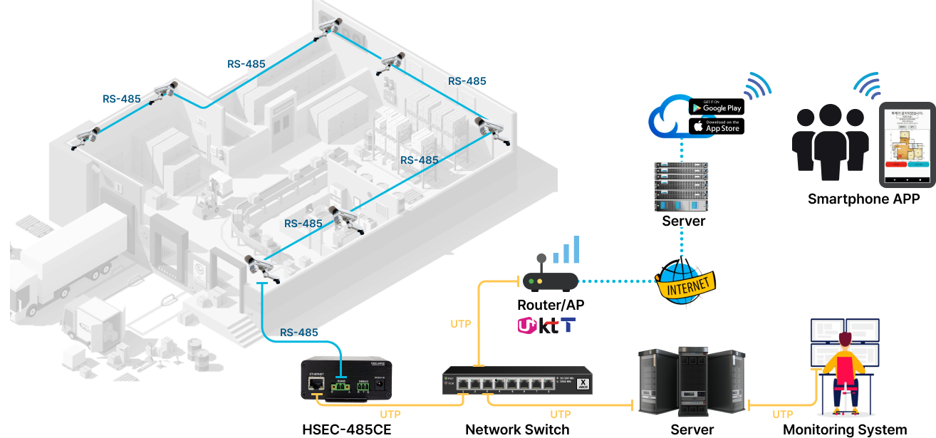 대한디지의 제품은 기존의 CCTV시스템과 연계하여 영상 및 화재 보안시스템을 구축할 수 있습니다.