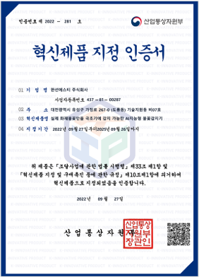 혁신제품 지정 인증서(300i)