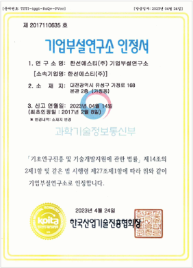기업부설연구소 인정서