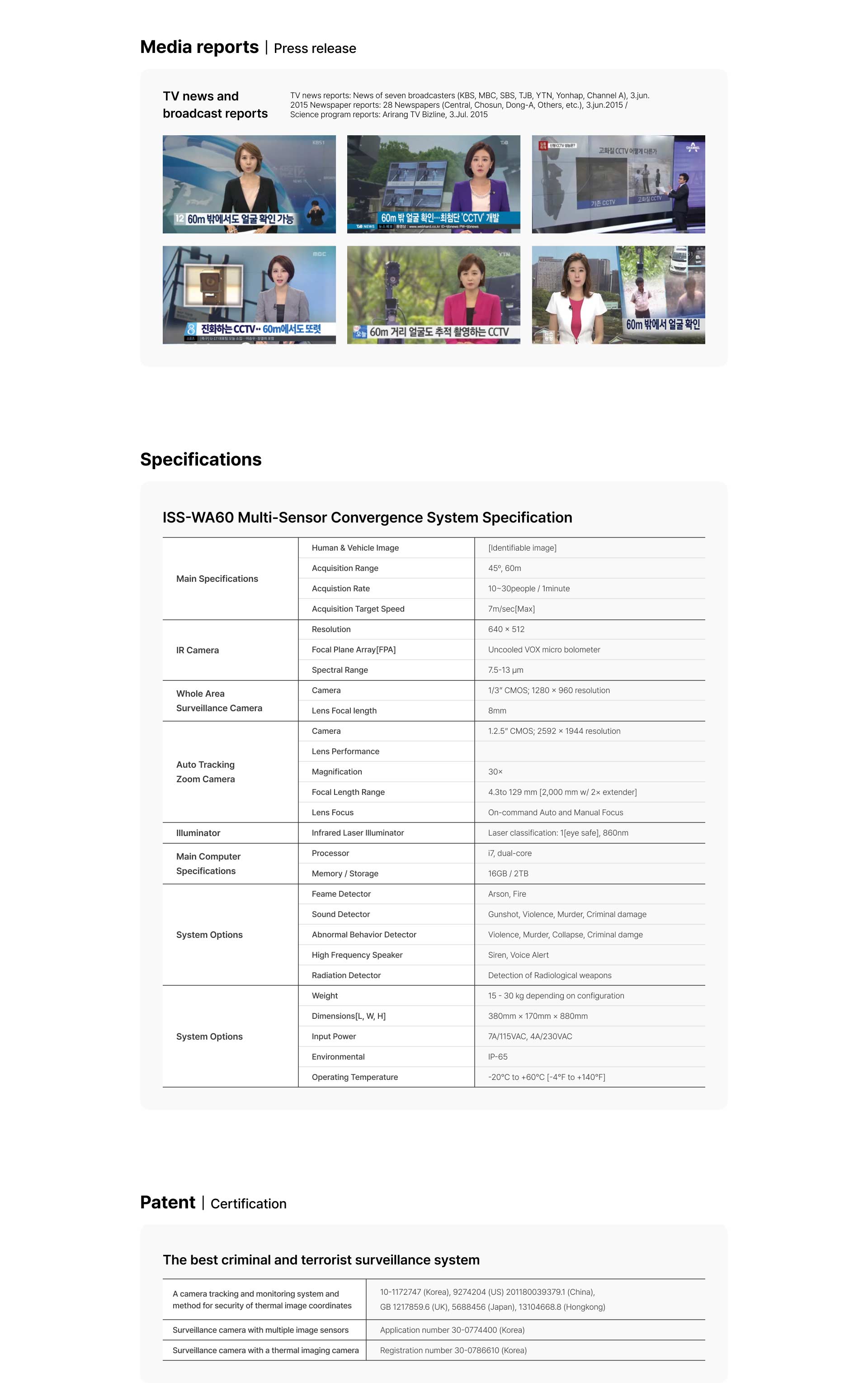 | Main Features | Self-diagnosis for normal operation, detection of initial flames (3~16cm) within 5 seconds |